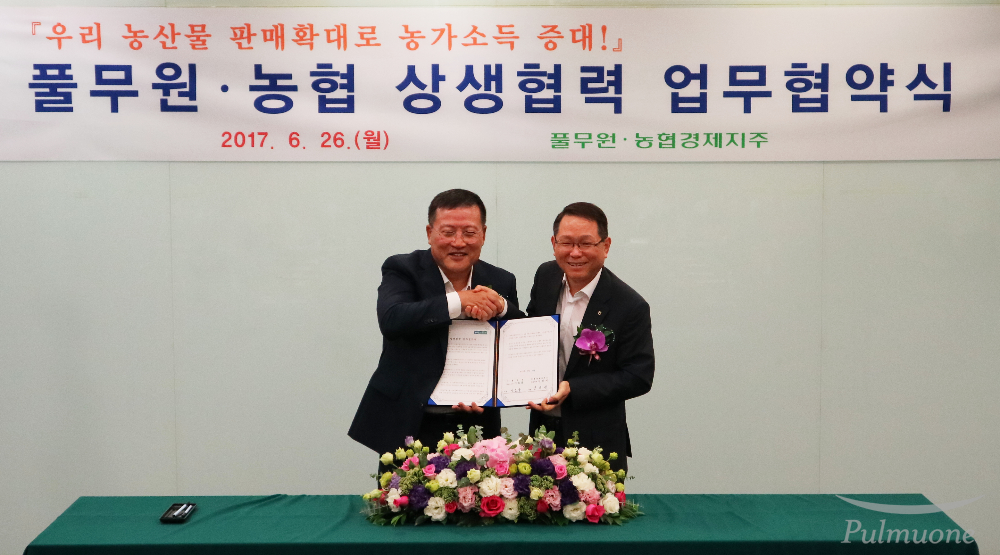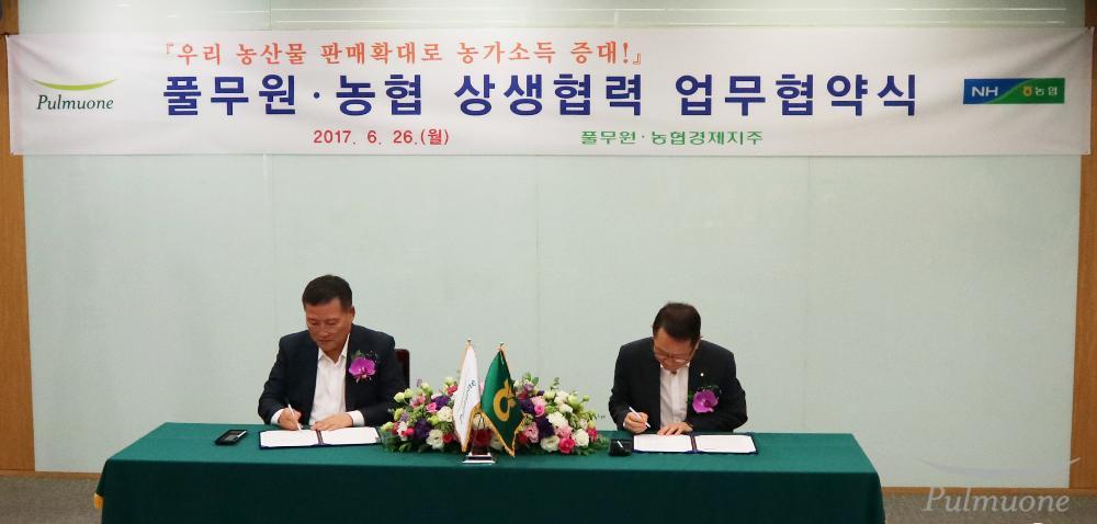 내용 풀무원식품 은 6월 26일, 서울 서대문구 농협중앙회 본사에서 농협경제지주와 국산 농산물 소비 확대를 위한 협약식(MOU)을 체결했다.
